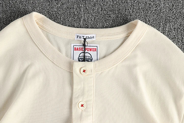 T-shirt Djerba manches courtes, col henry. 100% coton.